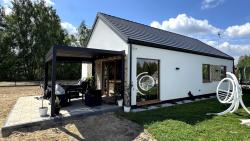 I. Termin realizacji: 2020 r. II. Lokalizacja: Dołuje (woj. zachodniopomorskie). III. Projekt: indywidualny (Szreder A.C.; 2019 r.). IV. Powierzchnia: 105,11 m2. V. Układ funkcjonalny: cztery pokoje (11,36 m2, 11,00 m2, 10,78 m2 oraz 8,00 m2), salon połączony z kuchnią (32,31 m2 + 7,11 m2), dwie łazienki (7,11 m2 oraz 2,61 m2), hol (5,63 m2), pomieszczenie techniczne (4,23 m2), wiatrołap (4,97 m2). VI. Standard energetyczny: łączony, PLATINUM (ściany; wsp. U=0,13 W/m2*K) + DIAMOND (dach; wsp. U=0,08 W/m2*K). VII. Fundament: płyta fundamentowa z ogrzewaniem podłogowym. VIII. Instalacje: glikolowy gruntowy wymiennik ciepła, wentylacja mechaniczna z odzyskiem ciepła (rekuperator Thessla Green AirPack Home 400v), c.w.u. (podgrzewacz wody Ariston Velis WIFI), elektryczna. IX. Inne elementy składowe domu: ostateczne pokrycie dachowe (blacha na rąbek stojący Ruukki Classic 50 Plus), okna (Budvar Centrum, T-Energy), drzwi zewnętrzne (Vikking, Arctic Plus, Diplomat A6), elewacja (deski elewacyjne z modrzewia syberyjskiego).